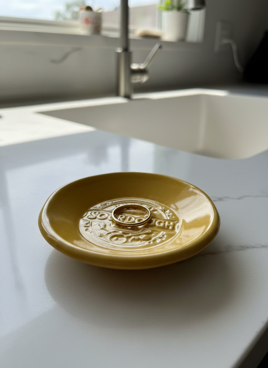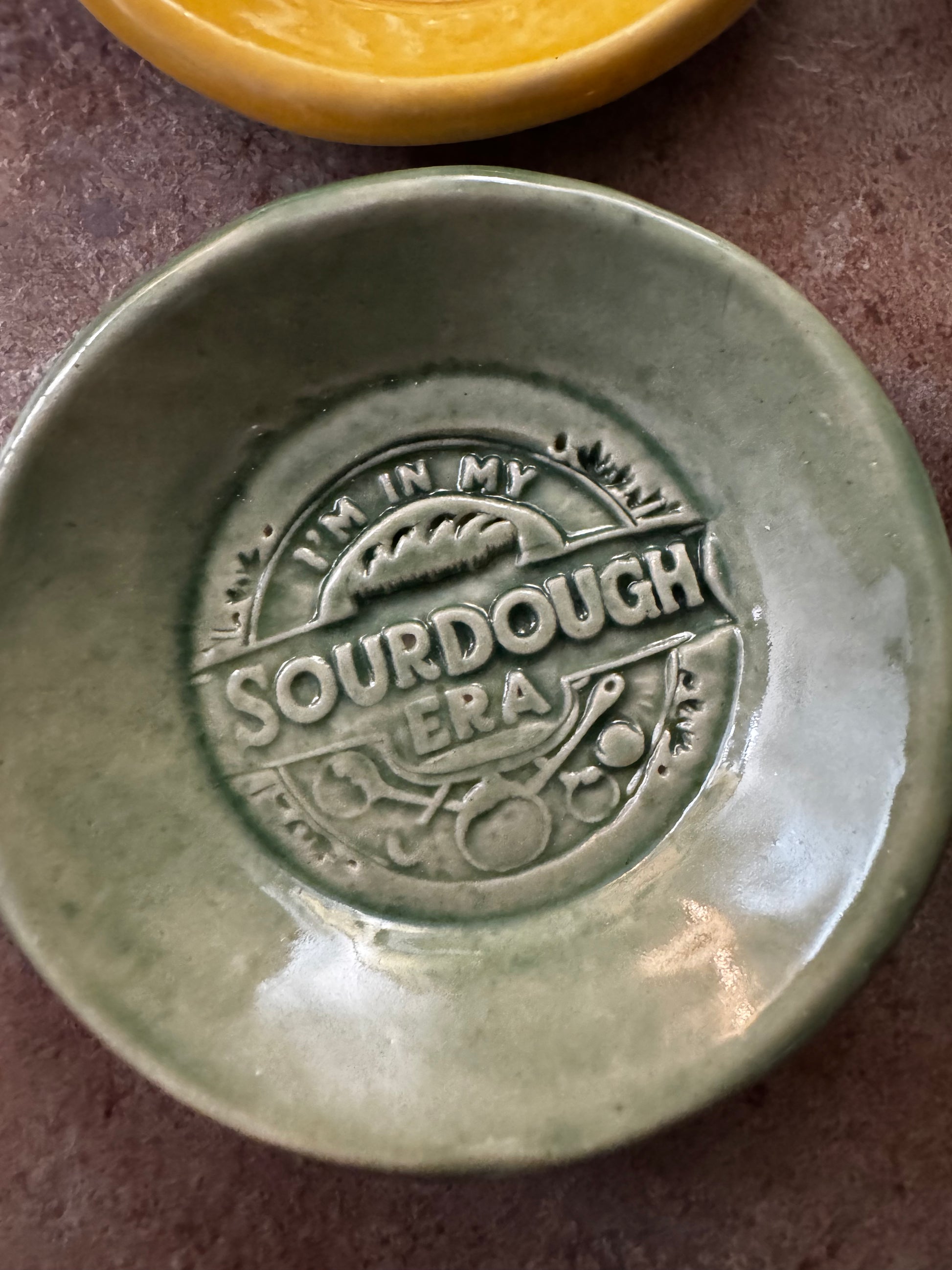 "Spice up your home decor with our Trinket Dish - Sourdough Era! A delightful addition to any kitchen, these cute dishes celebrate the joy of baking bread and being in the sourdough era. Perfect for holding jewelry, keys, or your favorite trinkets. A must-have for any home baker or sourdough lover!"